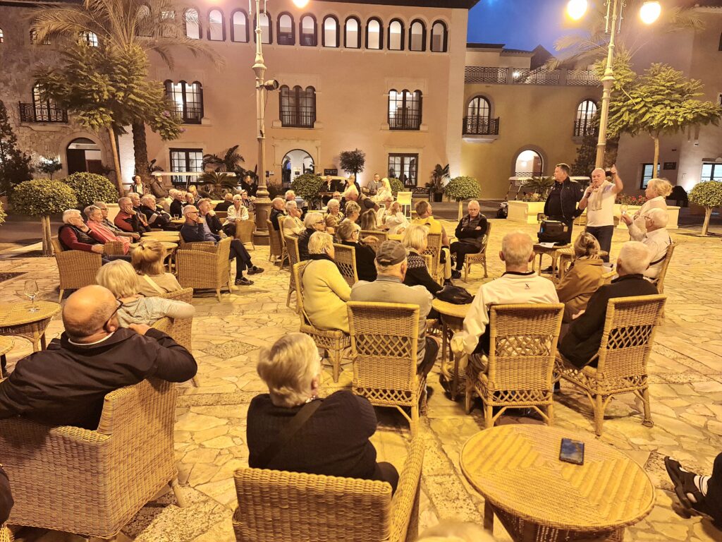 Haustferð golfklúbbsins Teigs, til Villaitana, 15. til 18. nóvember 2025. Um 90 golfspilandi. Svipmyndir frá degi 1 og 2; – af kynningarfundi á aðaltorginu, Levante golfvellinum og í tapas-kvöldverðinum í boði Teigs – takk fyrir það allt. Ljósmyndir – Arinbjörn Sigurgeirsson.